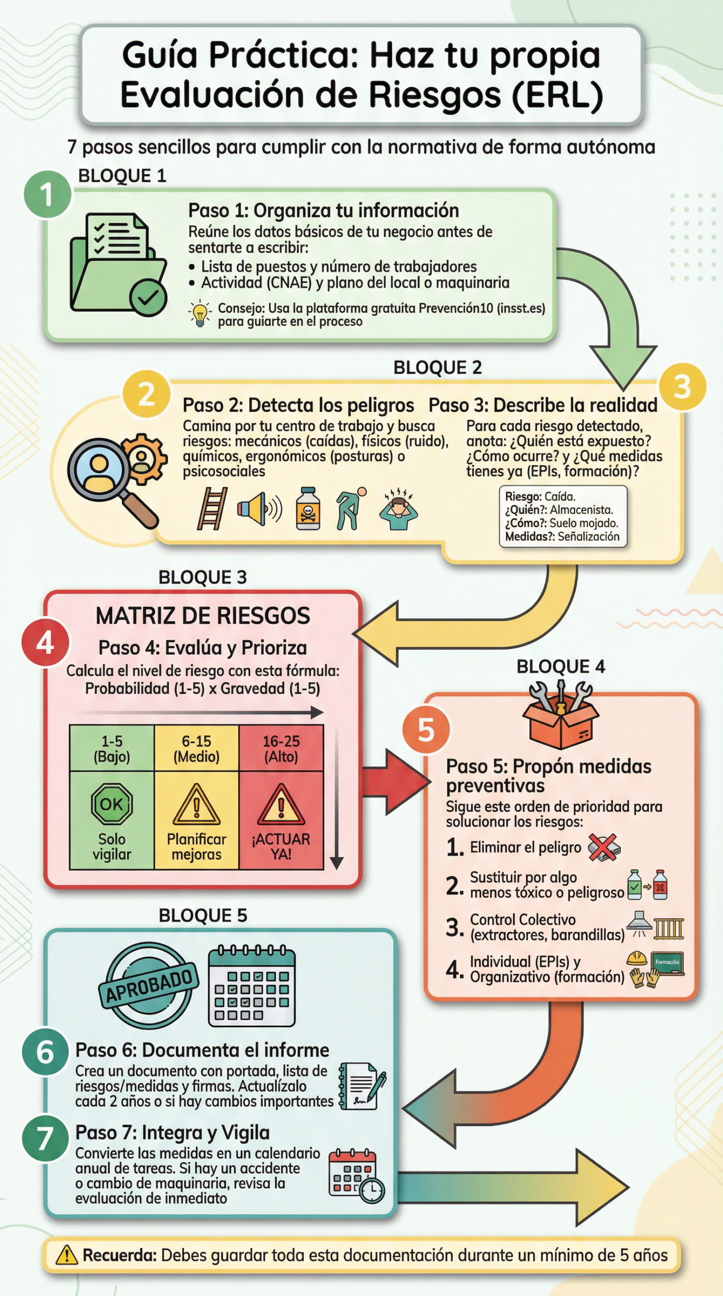 Un documento que identifica peligros en tu lugar de trabajo, evalúa su probabilidad y gravedad, y documenta qué medidas tomas para controlarlos.